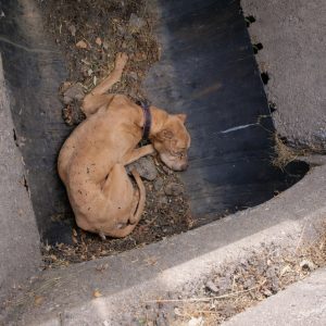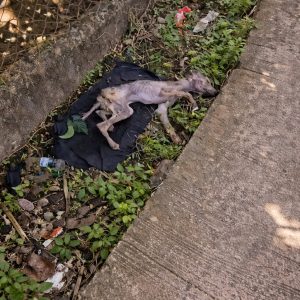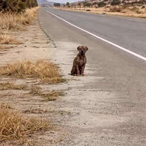 The dog lay motionless along the side of a quiet road, blending almost seamlessly into the dust and gravel around him. At first glance, he looked like…