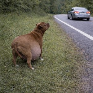 She was just another shadow along the roadside—easy to miss if you weren’t looking closely. A stray mother dog, alone and heavily pregnant, moving slowly with a…