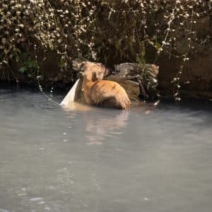 The video opens with a tense and emotional moment. At the bottom of a deep drainage ditch, a brown dog stands surrounded by murky water and scattered…