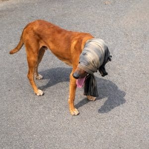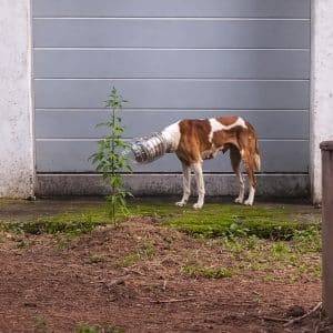 Dog Rescued After Getting Head Stuck in Plastic Container