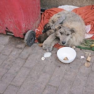 Stray Mother Dog Protects Her Puppies Beside a Trash Bin Until Help Arrives