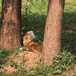 At first glance, it looked like an ordinary stray dog. But something was terribly wrong. A brown dog was wandering near a tree, his head completely trapped…