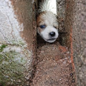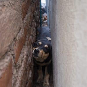 Tiny Dog Rescued After Being Stuck Between Two Narrow Walls