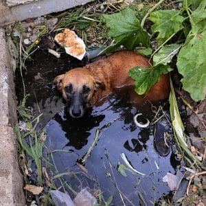 Stray Dog Rescued From Deep Drain Filled With Water and Debris
