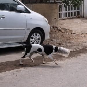 Terrified Stray Dog Finally Freed From Plastic Jar After Long Chase