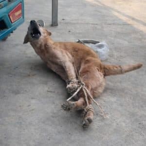 At the beginning of the video, the scene is difficult to take in. A dog lies on the ground, his four legs tightly bound with rope. He…