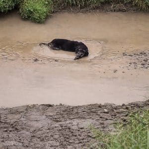After a series of heavy downpours, a small black dog had become trapped in a thick mud pit near a cornfield. Half of his body was submerged,…