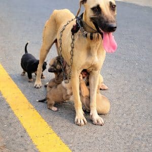 She lay quietly in the middle of the road. A black-and-white dog with a swollen belly so large, it didn’t look natural. People gathered. Whispers spread quickly….