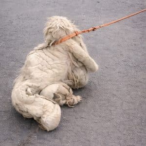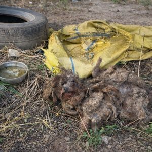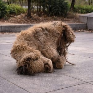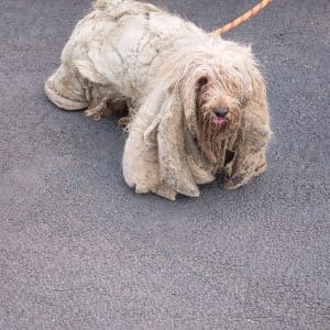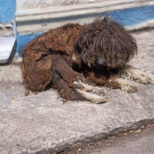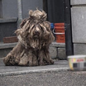 When they first saw him, it was hard to understand what they were looking at. A shape on the street—covered in thick, hardened layers of matted fur….