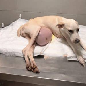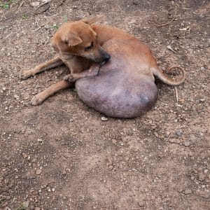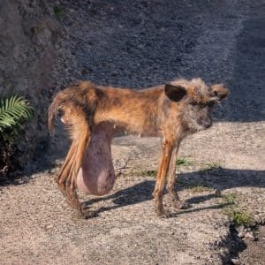 The first image was hard to look at. A small dog, frail and exhausted, with a heavy mass hanging beneath her body—so large it seemed impossible for…
