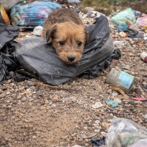 At the edge of a roadside dumping area, among black plastic bags and scattered waste, something small moved. A tiny brown puppy had curled himself into the…