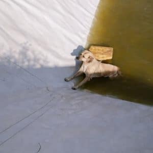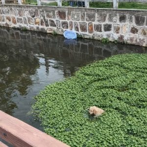 In the middle of a quiet canal, something small and barely visible was struggling to stay above the surface. A tiny yellow dog had become stranded on…